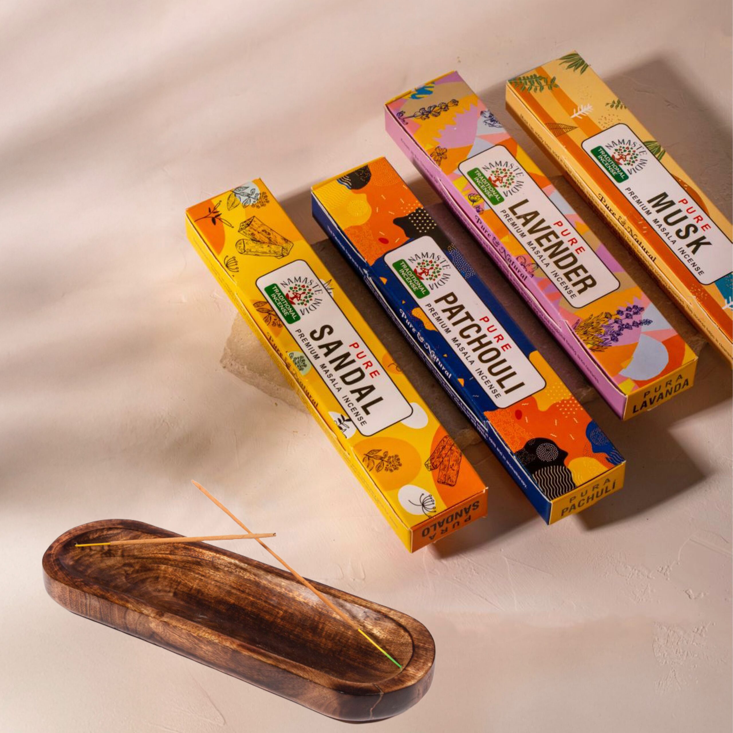 Mango Wood Incense holder + 4 Boxes Incense Sticks from our handmade traditional incense collection